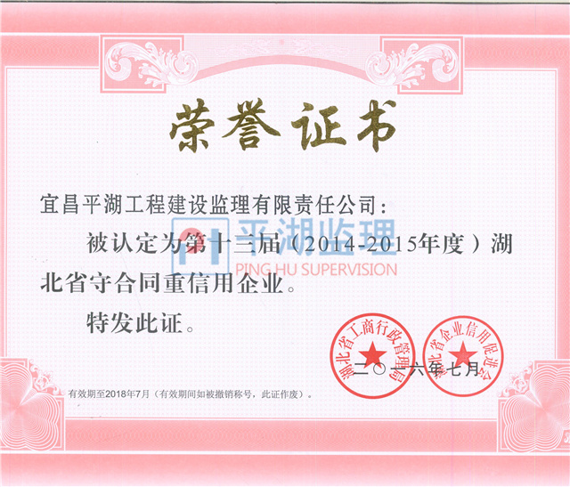 | 湖北省第十三屆(2014-2015年度)守合同重信用企業(yè) |