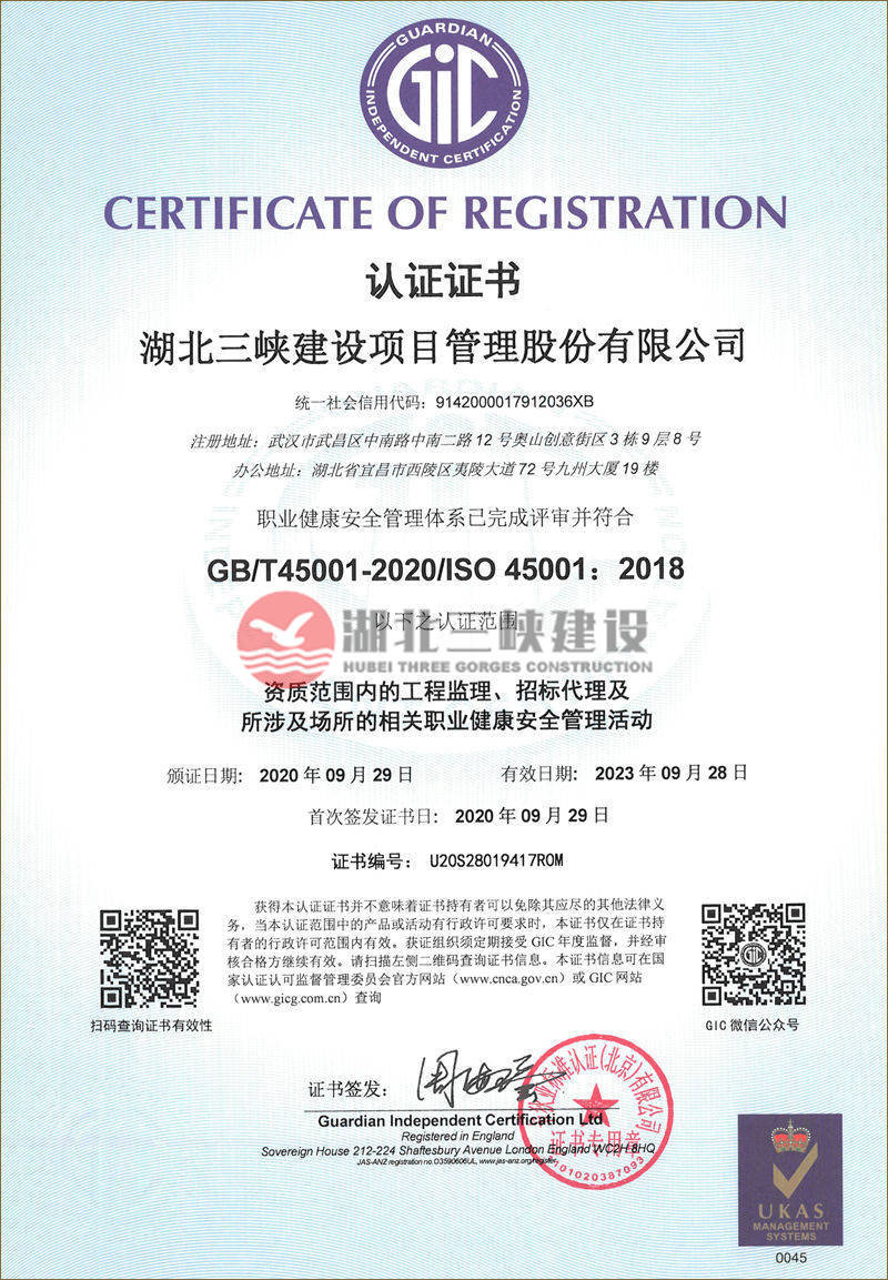 | 職業(yè)健康安全管理體系認(rèn)證證書 |