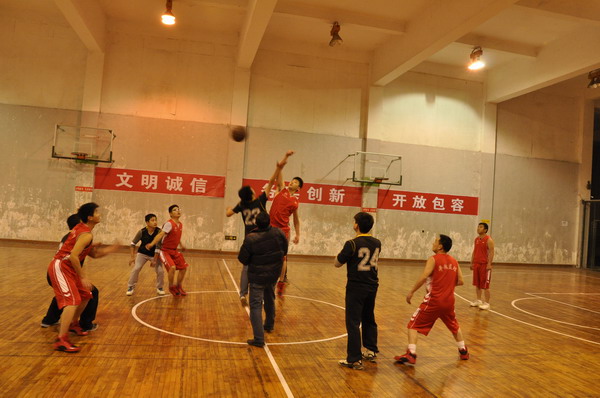 盛總(中)與宜昌平湖工程建設(shè)監(jiān)理有限責(zé)任公司籃球隊(duì)合影 比賽現(xiàn)場(chǎng),揮灑汗水,激情飛揚(yáng)!