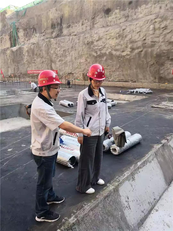 興發(fā)廣場商業(yè)綜合體項目進(jìn)行底板防水施工質(zhì)量檢查